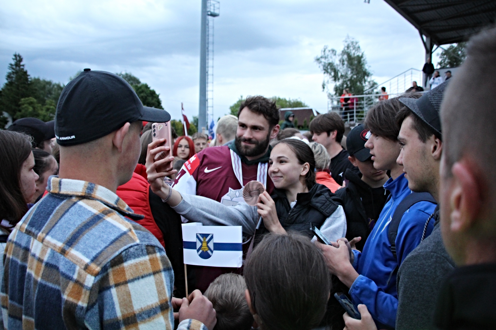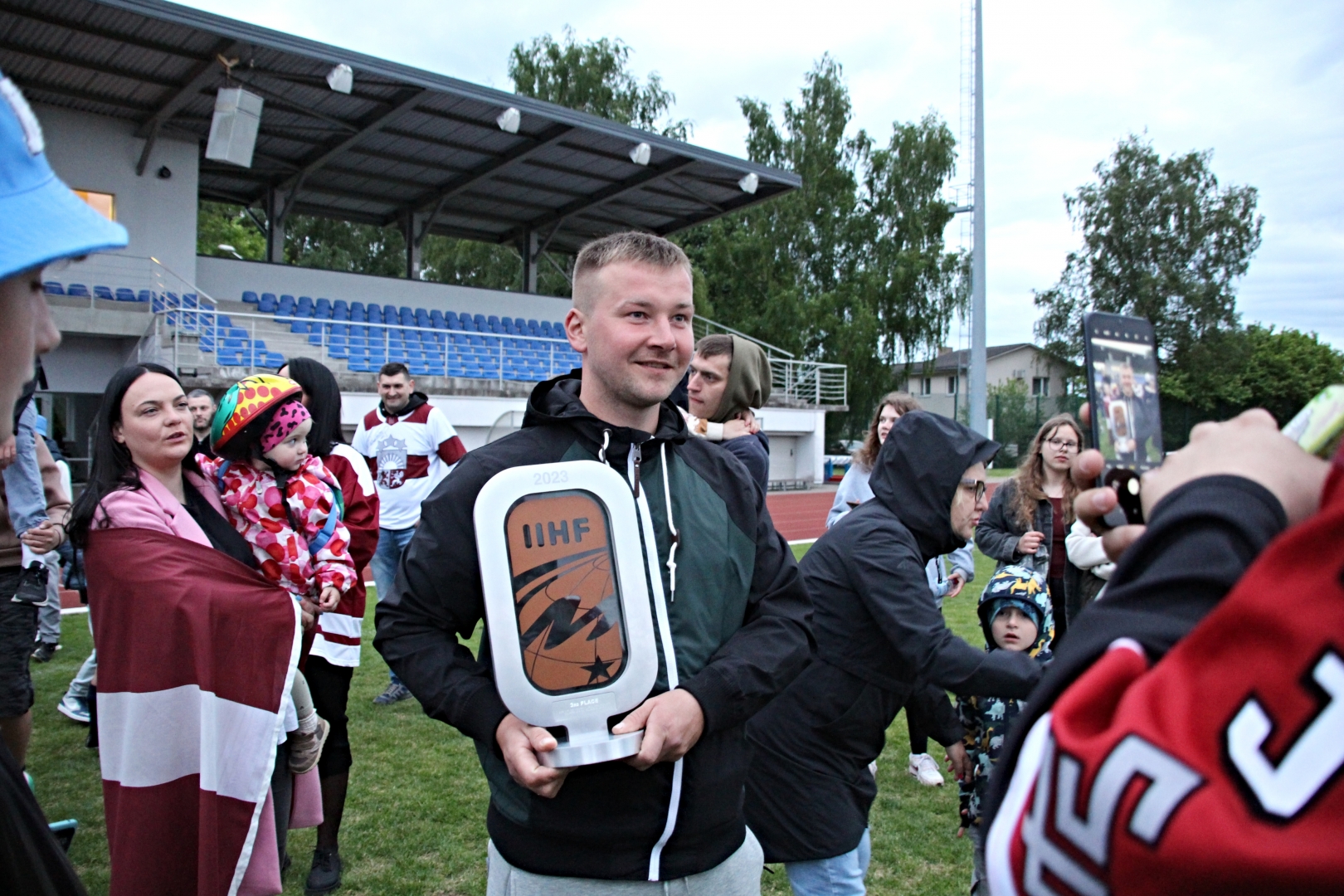 1. jūnija vakarā Iecavas stadionā notika tikšanās ar nacionālās izlases hokejistu un iecavnieku Jāni Jaku un viņa komandas biedru Ivaru Punnenovu.