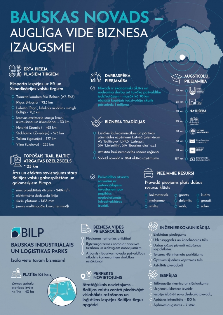 Bauskas Industriālā un loģistikas parka teritorija paredzēta jauktai, darījumu un rūpnieciskajai apbūvei.
