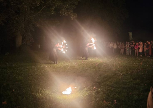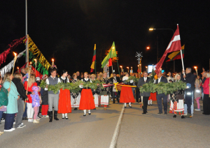Ap ugunskuru sanākušie vija rokas rotaļās un dejās, kamēr folkloras kopas – Codes “Dreņģeri”, Germanišķu “Vijoklis” un Biržu “Siaudala” – priecēja ar dziesmām un dejām, kas iedzīvināja baltu tautu garu.