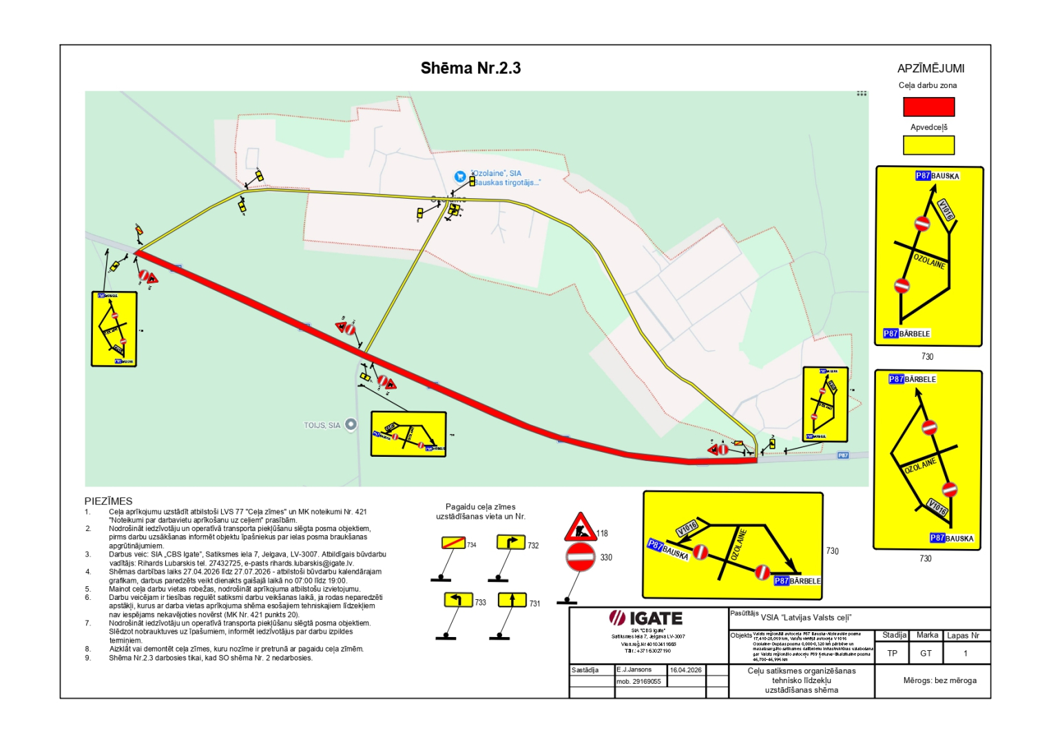 - satiksmes organizācija tiks nodrošināta ar pagaidu ceļa zīmēm.