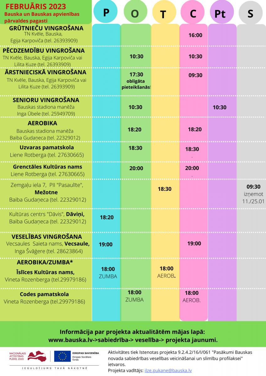 Pieteikšanās nodarbībām un plašāka informācija.