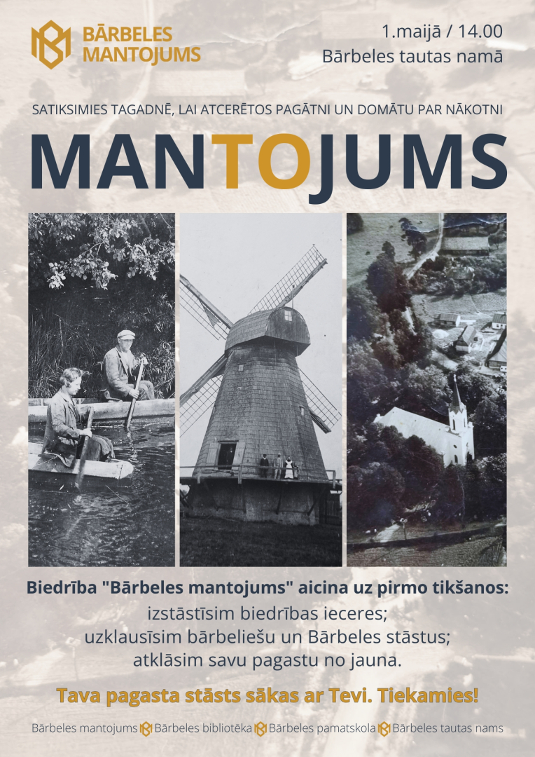 Bauskas novada pašvaldība informē, ka Bārbeles pagastā izveidota biedrība “Bārbeles mantojums”, kuras iniciatori ir vietējie iedzīvotāji – Edmunds Reķis, Santa Reķe un Elīna Jegorova. Biedrības darbības mērķis ir stiprināt interesi par Bārbeles pagasta vēsturi, kā arī rūpēties par kultūrvēsturiskā mantojuma apzināšanu, saglabāšanu un popularizēšanu.